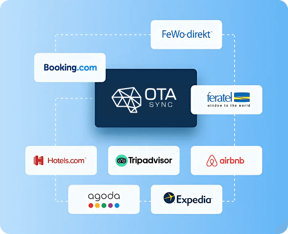 Channel Manager is a module that allows you to connect & synchronize your OTA channels (such as Booking.com, AirBnB, Expedia, Hotels.com, HomeAway, Trip Advisor, etc.). No overbookings!